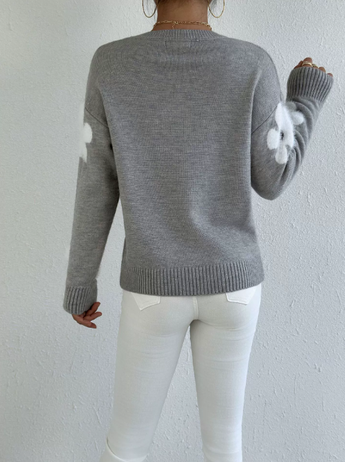 Pull Tricoté À Manches Lanternes Et Col Rond Pour Femmes – Tricot Tendance Automne/Hiver