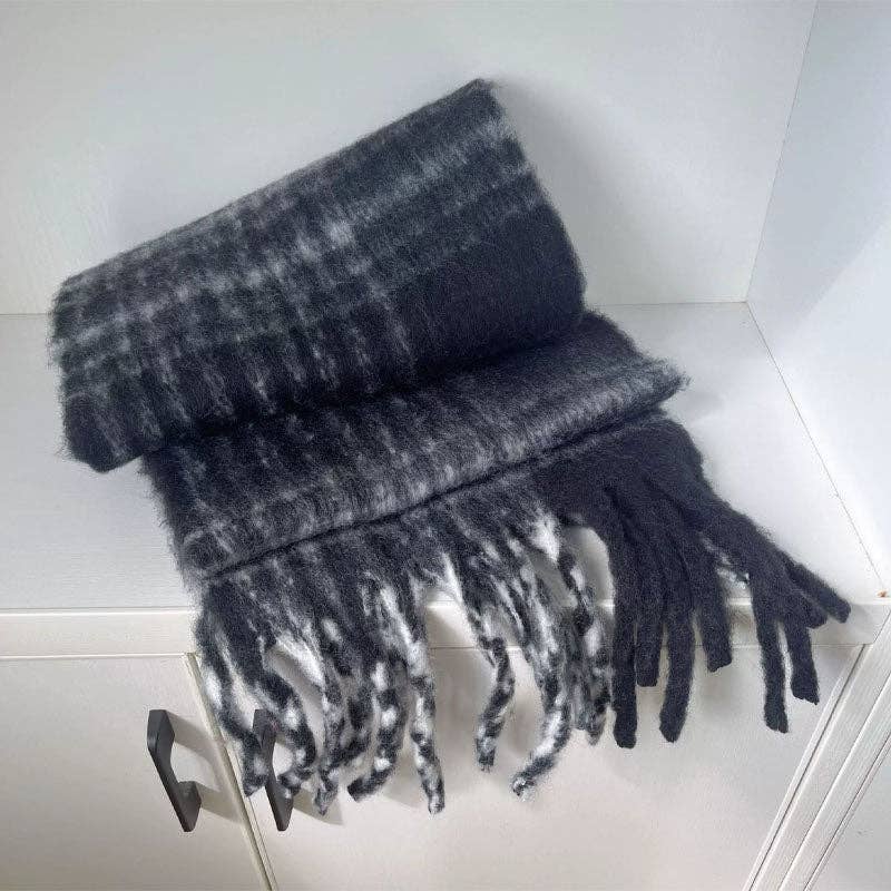 Écharpe À Carreaux Vintage Pour Femmes – Chaude À Franges Et Blocs De Couleurs