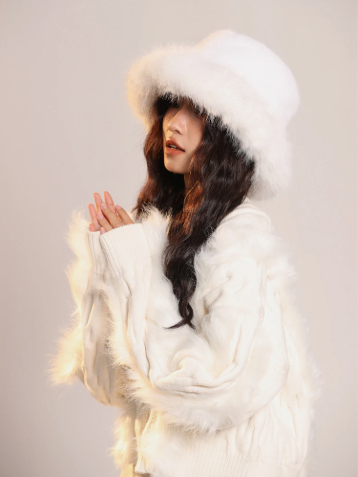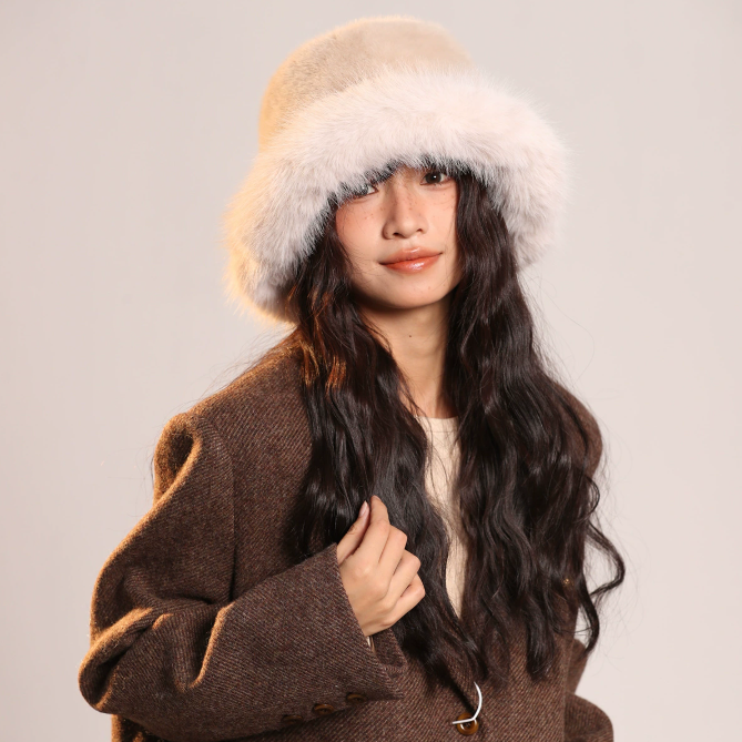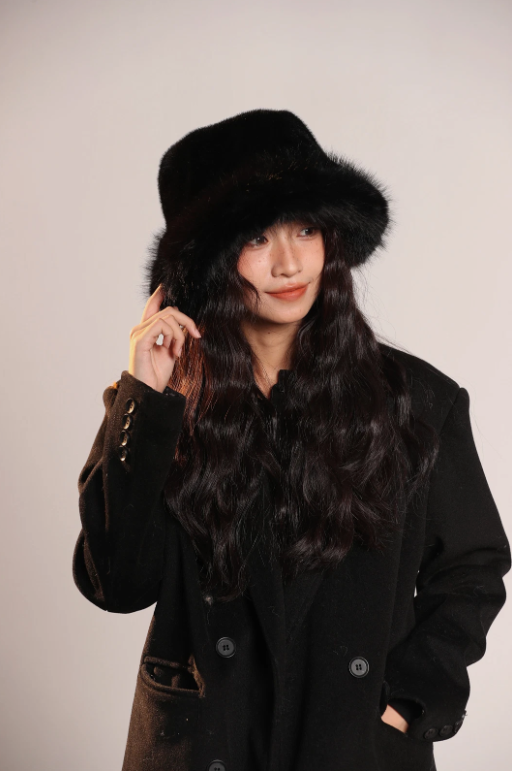 Chapeau femme hiver élégant fausse fourrure – noir, marron, blanc