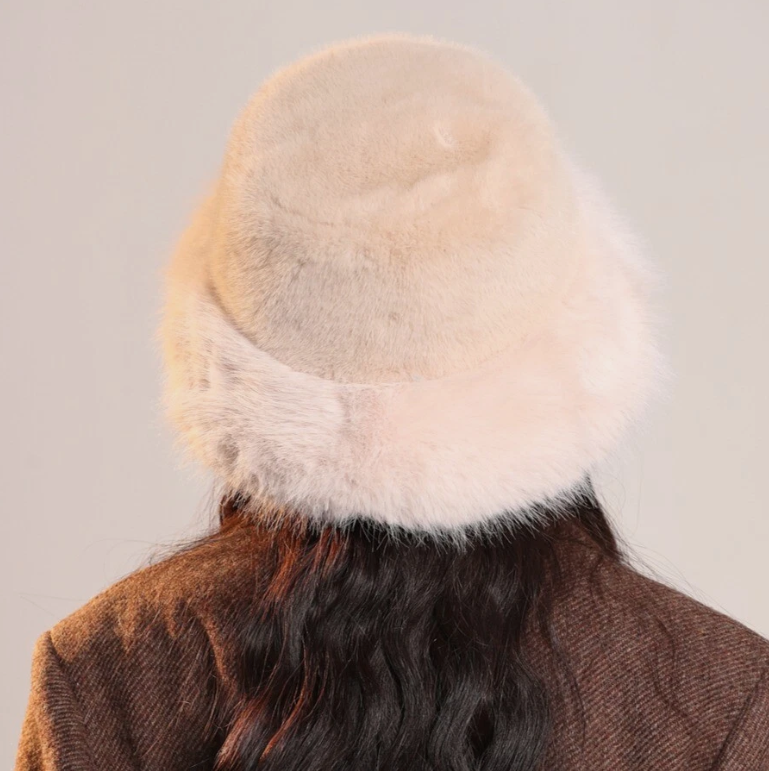Chapeau bob femme en fausse fourrure – hiver doux – noir, blanc, rose, gris ou kaki