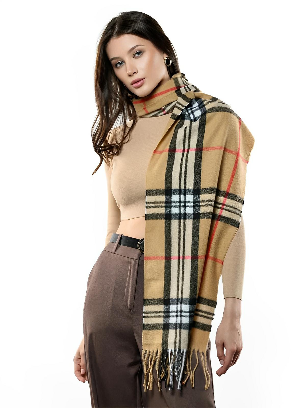 Écharpe Femme En Laine À Carreaux – Accessoire Doux Et Chaleureux Pour La Saison Automne Hiver