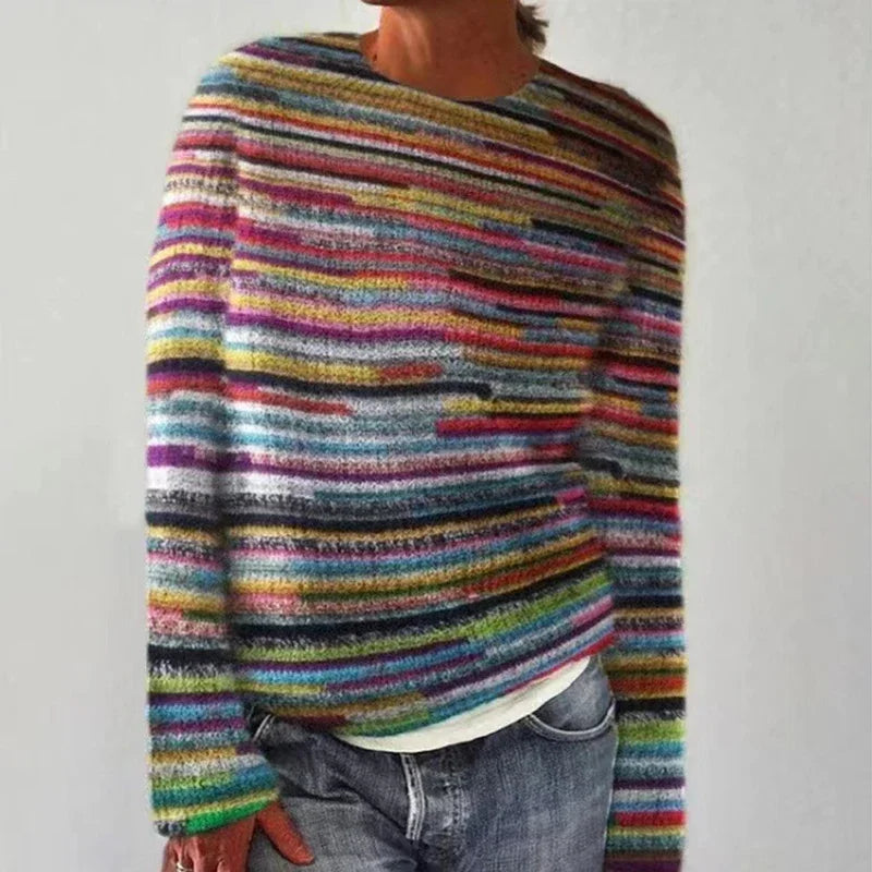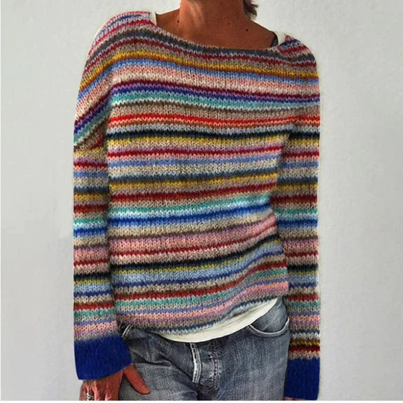 Pull En Tricot Rayé Rétro Pour Femmes – Col Rond Ample Style Décontracté Automne/Hiver