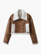 Veste Aviateur Courte Marron Caramel | Fausse Fourrure | Style Moderne