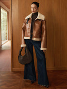 Veste Aviateur Marron | Similicuir et Fausse Fourrure | Style Intemporel