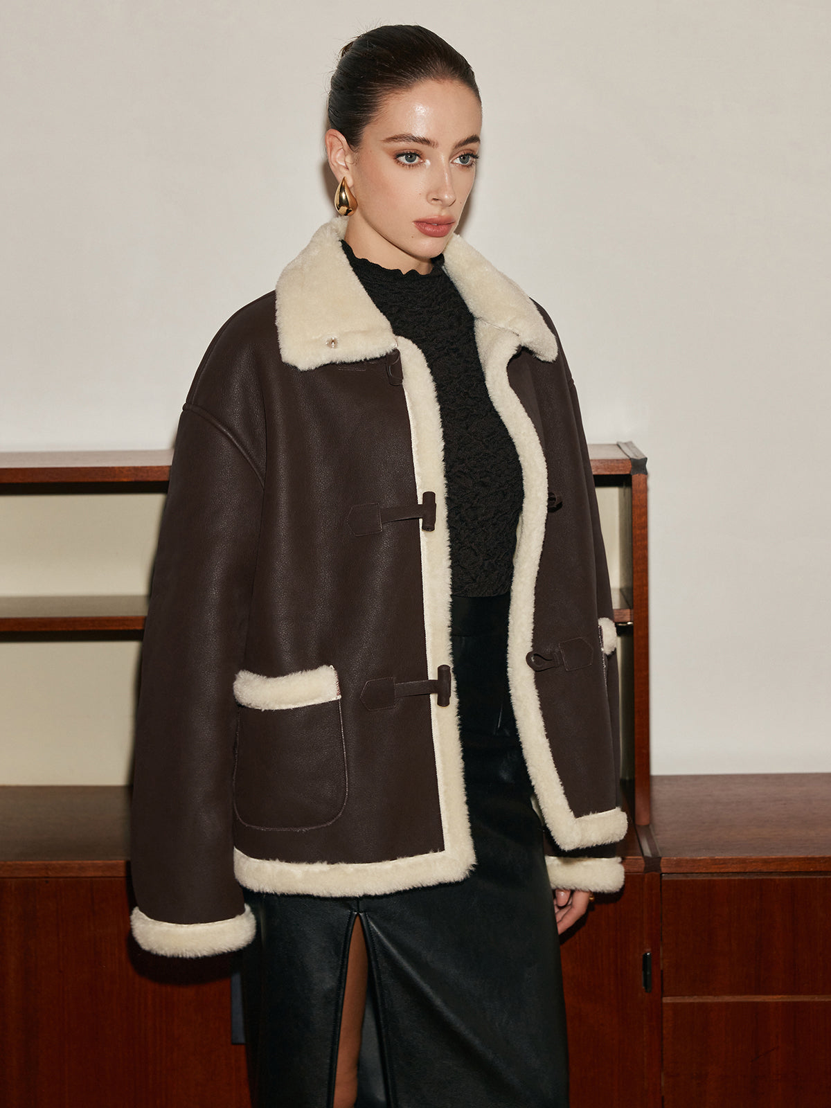 Veste Courte en Sherpa | Boutons en Bois | Style Cosy et Tendance