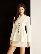 Blazer Structuré Blanc | Boutons Contraste | Élégance Moderne