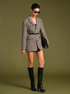 Blazer Tweed Ceinturé | Motif Classique | Élégance Structurée