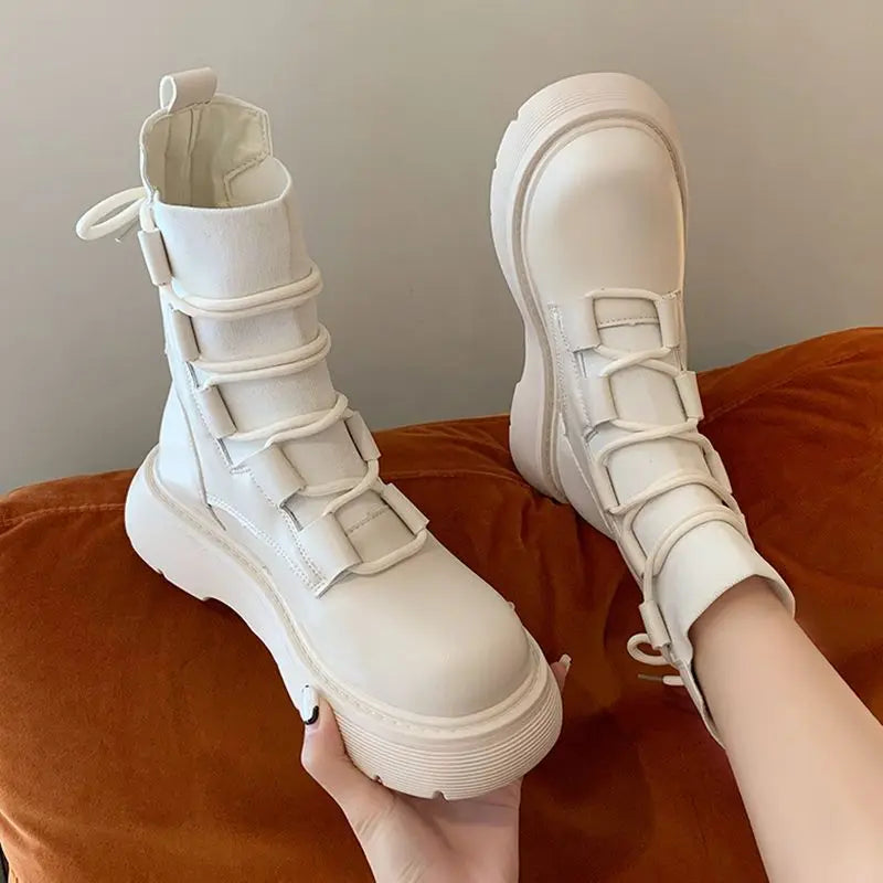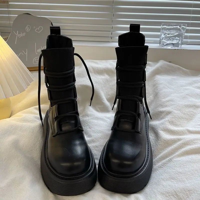 Bottines Chaussettes Style Punk Pour Femmes – Bottines À Lacets Mode Automne/Hiver