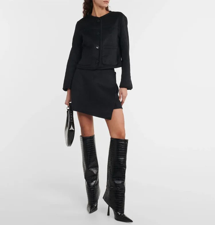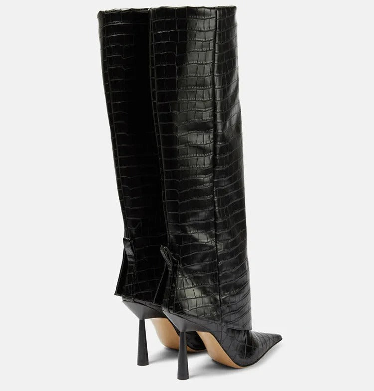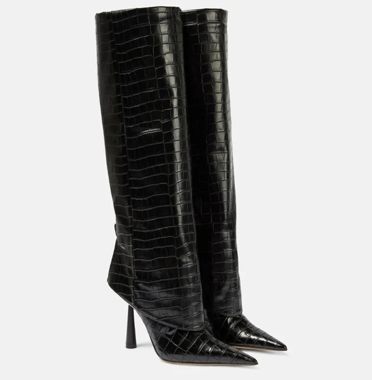 Bottes Hautes Femme Pointues En Cuir – Design Élégant Et Intemporel Pour La Saison Automne Hiver