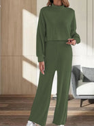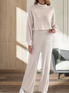 Ensemble Automne/Hiver Pour Femmes – Haut À Col Montant En Maille Avec Pantalon Ample Taille Haute