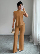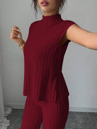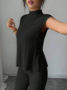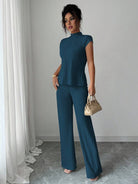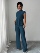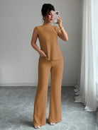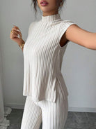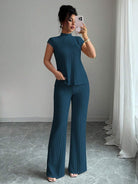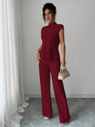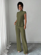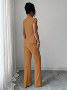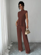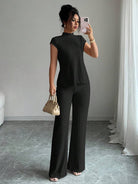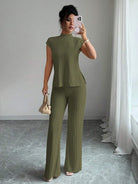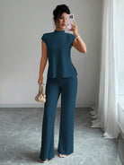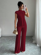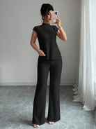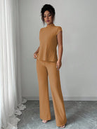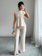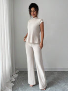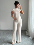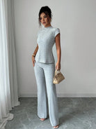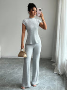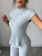 Ensemble Décontracté Élégant Pour Femmes – Haut Côtelé À Manches Courtes Et Pantalon Automne/Hiver