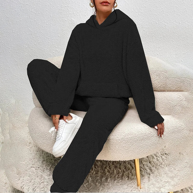 Ensemble Pyjama En Polaire Peluche Pour Femmes Avec Capuche – Tenue Confortable Hiver