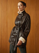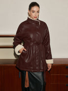 Manteau Aviateur en Similicuir | Doublure Fausse Fourrure | Ceinture Ajustable