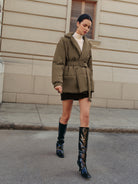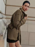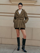 Manteau Court Ceinturé Kaki | Élégance et Confort | Style Moderne