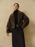 Manteau Court en Laine | Ceinture Ajustable | Brun Élégant
