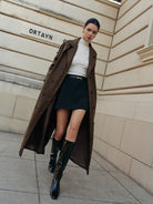 Astuce de style : Associez-le à une robe courte et des bottes hautes pour un look chic et moderne, ou portez-le ouvert sur un jean et un pull col roulé pour un style décontracté et raffiné.