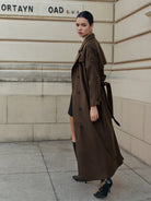 Trench-Coat Long Marron | Élégance Automnale | Ceinture Ajustable