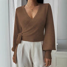 Pull Cache-Cœur À Col En V Pour Femmes – Haut Élégant Automne/Hiver