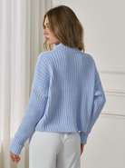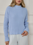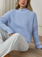 Pull femme en tricot doux – Col mi-haut – Bleu – Automne/Hiver