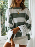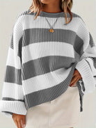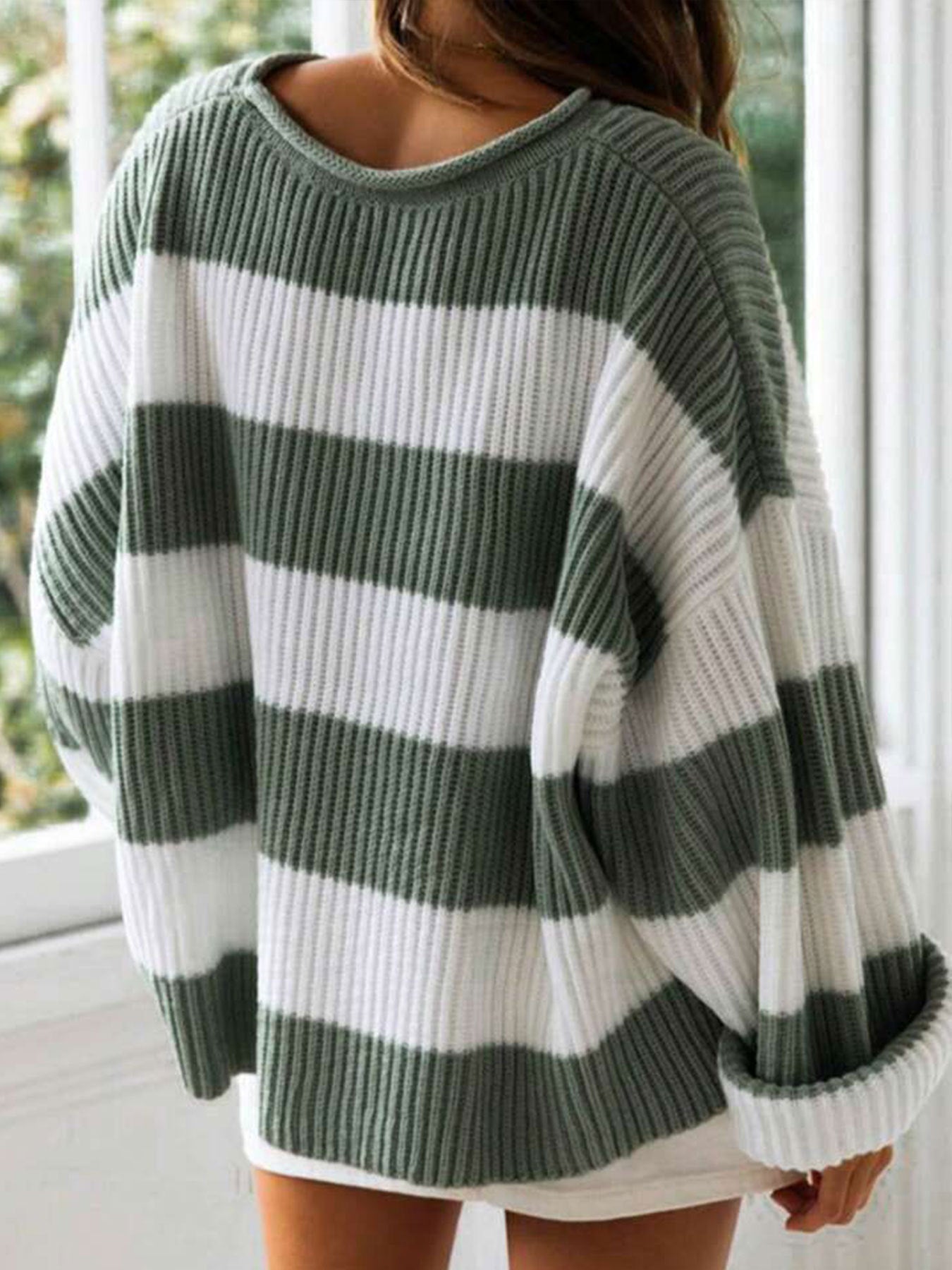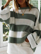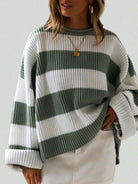Pull En Tricot Rayé Rétro Pour Femmes – Col Rond Ample Style Décontracté Automne/Hiver