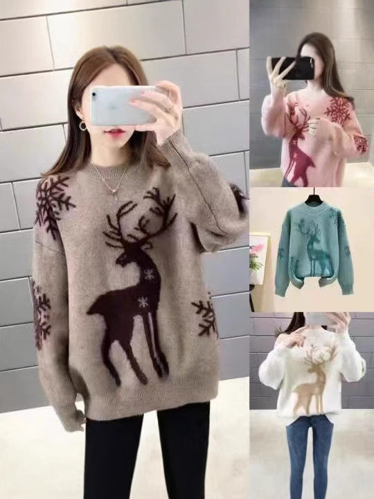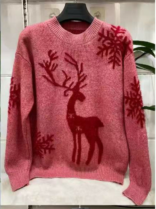 Pull Tricoté Imprimé De Noël Chaud Pour Femmes – Chandail Festif Automne/Hiver