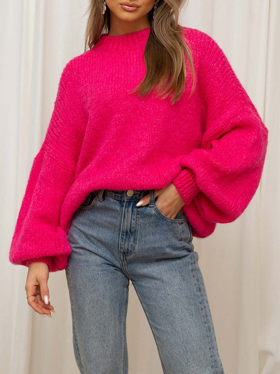 Pull Tricoté À Manches Lanternes Et Col Rond Pour Femmes – Tricot Tendance Automne/Hiver