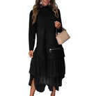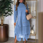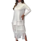 Cette robe pull à col montant et jupe en tulle superposée offre une élégance raffinée et un confort ultime. Idéale pour une allure féminine et sophistiquée en toute simplicité.