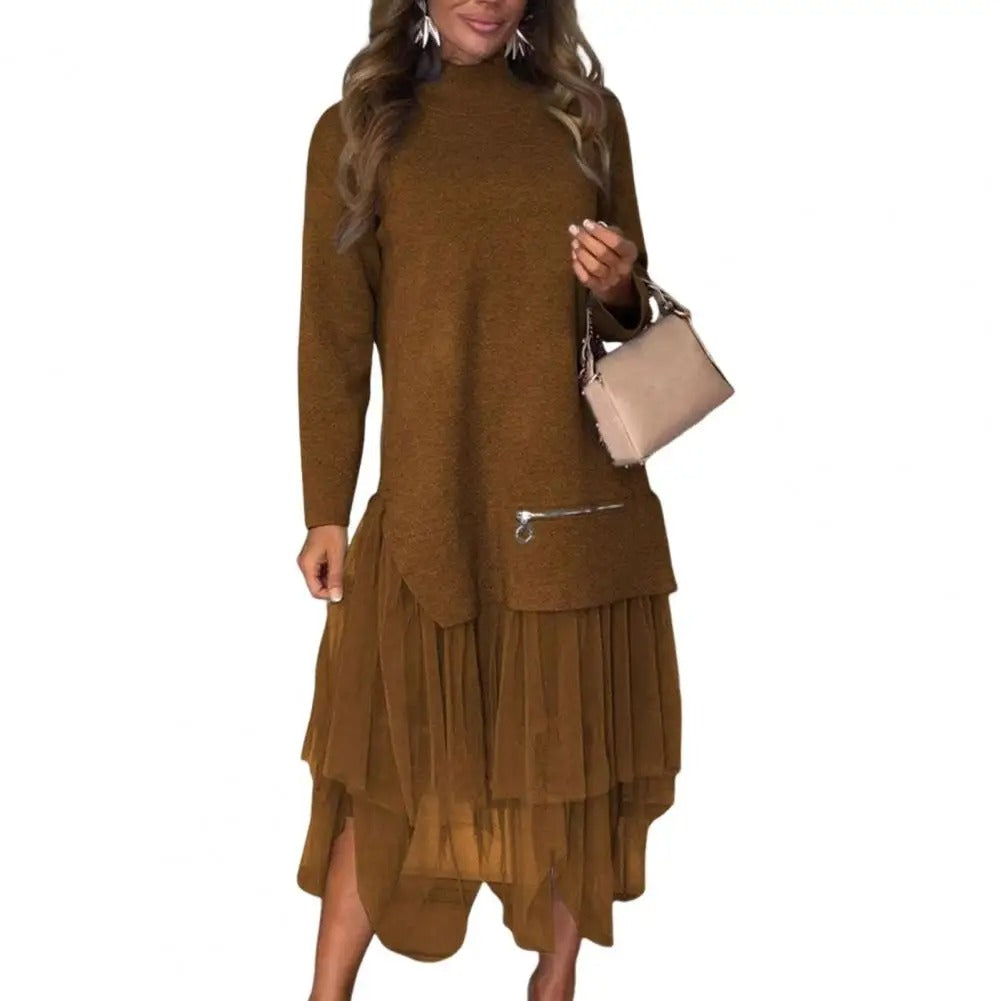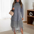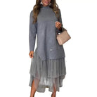 Robe Pull et Tulle | Col Montant & Jupe Volantée | Élégance Décontractée