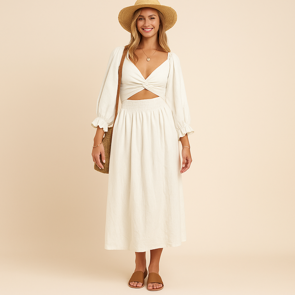 Robe Soleil Bohème – Midi à Découpe & Coupe Fluide d’Été