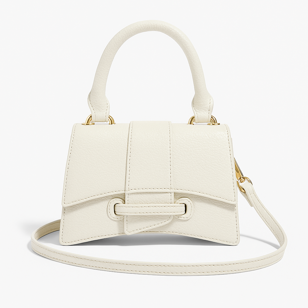 Ce mini sac à main structuré séduit par sa silhouette géométrique et son fermoir en boucle façon nœud. Avec sa poignée rigide et sa bandoulière amovible, il s’adapte à tous les styles : porté main pour un look chic ou en crossbody pour plus de praticité.