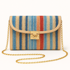 Ces sacs bandoulière en raphia tressé aux rayures multicolores sont l’accessoire idéal pour insuffler une touche bohème et joyeuse à vos tenues estivales. Leur silhouette compacte, associée à une chaîne dorée élégante et une fermeture métallique brillante, en fait un parfait compagnon de jour comme de nuit.