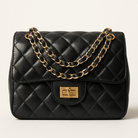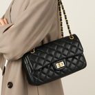 Ce sac matelassé noir en simili cuir avec chaîne dorée incarne l'élégance parisienne par excellence. Avec sa silhouette structurée, son rabat classique et sa fermeture twist, il est aussi pratique que sophistiqué.