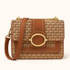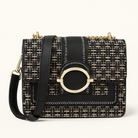 Ce sac structuré à motif cannage revisité séduit par son élégance graphique et son grand anneau doré central. Idéal pour rehausser vos looks de jour comme de soirée, il combine style affirmé et praticité avec sa bandoulière réglable et sa forme compacte.