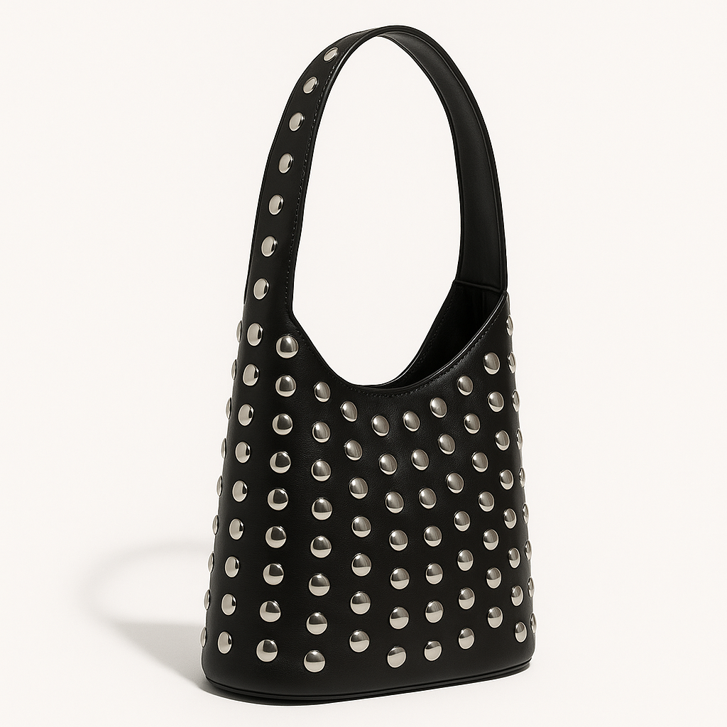 Sac Épaule | Similicuir Noir | Détails Cloutés