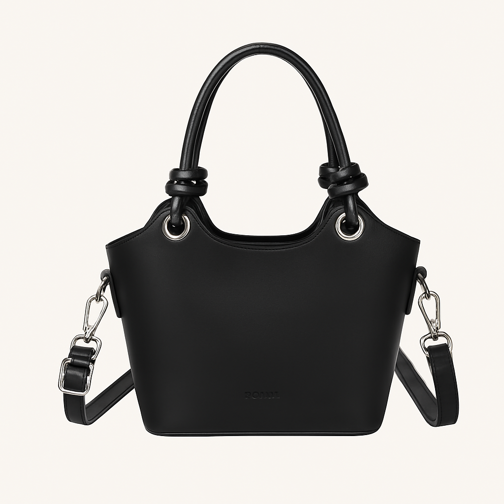Ce sac seau structuré est l’allié chic et pratique que vous attendiez. Sa forme épurée, ses poignées nouées originales et sa bandoulière amovible lui confèrent une allure résolument moderne, idéale pour passer du bureau à l’afterwork sans compromis sur le style.