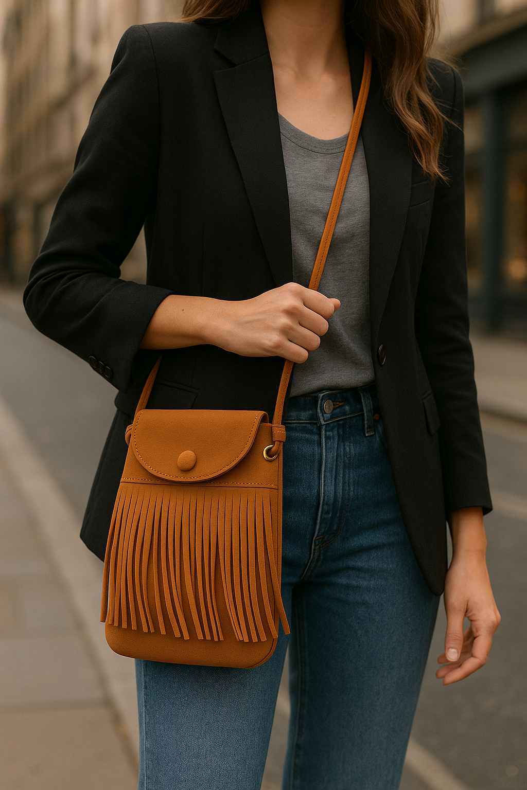Sac Bandoulière | Similicuir Daim | Franges Bohème