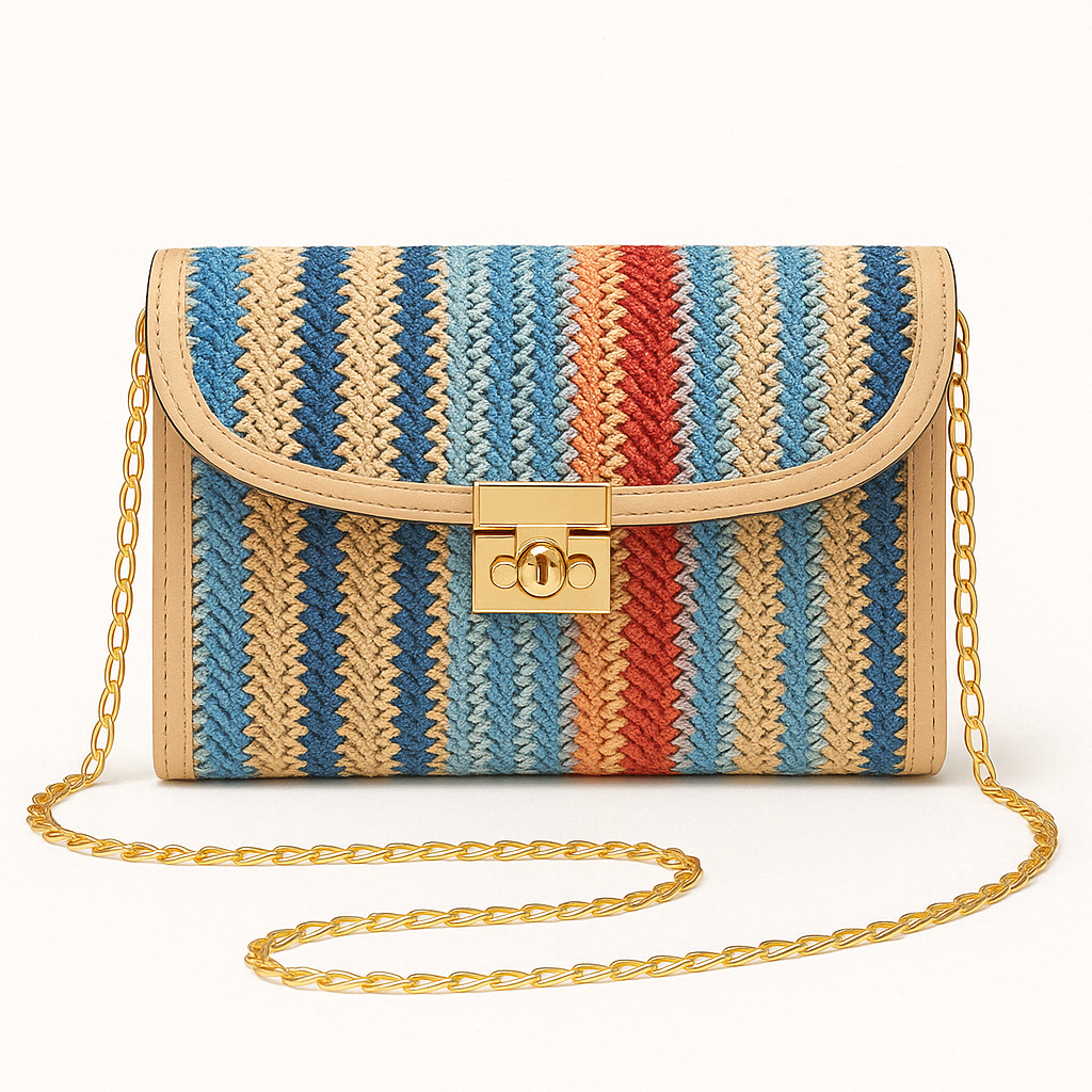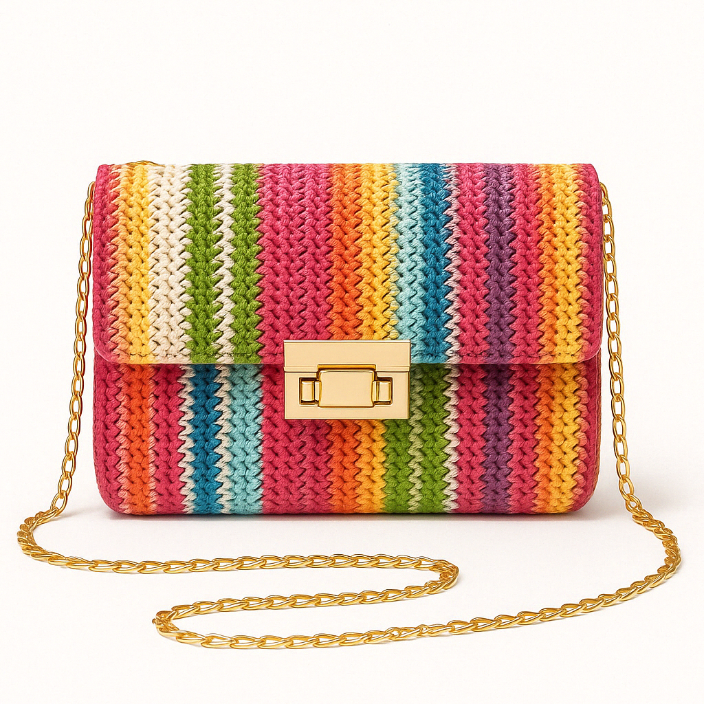 Sac Bandoulière | Raphia Tressé | Rayures Multicolores