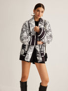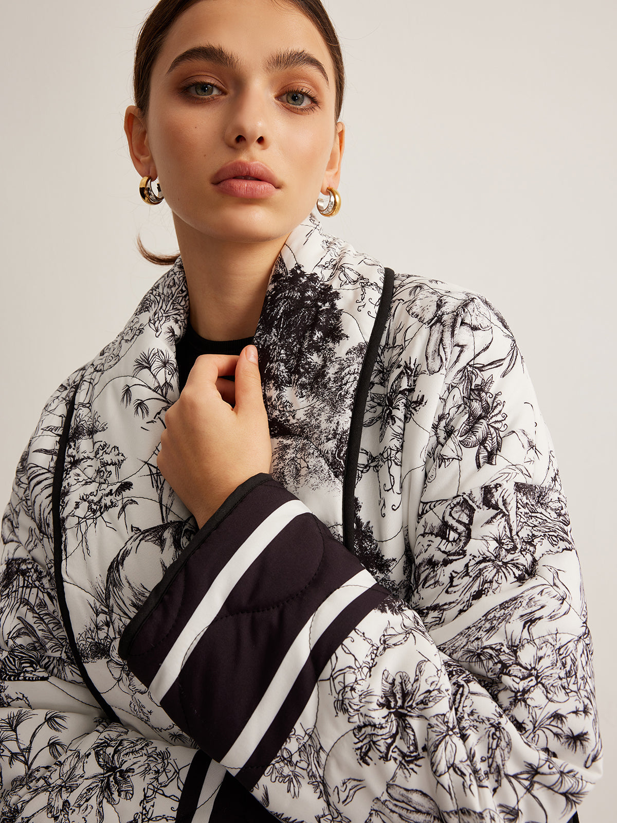 Veste Kimono Imprimée | Noir et Blanc | Élégance Graphique