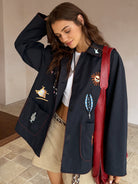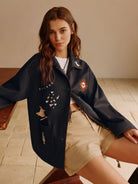 Veste Noire Brodée | Motifs Célestes | Élégance Artistique